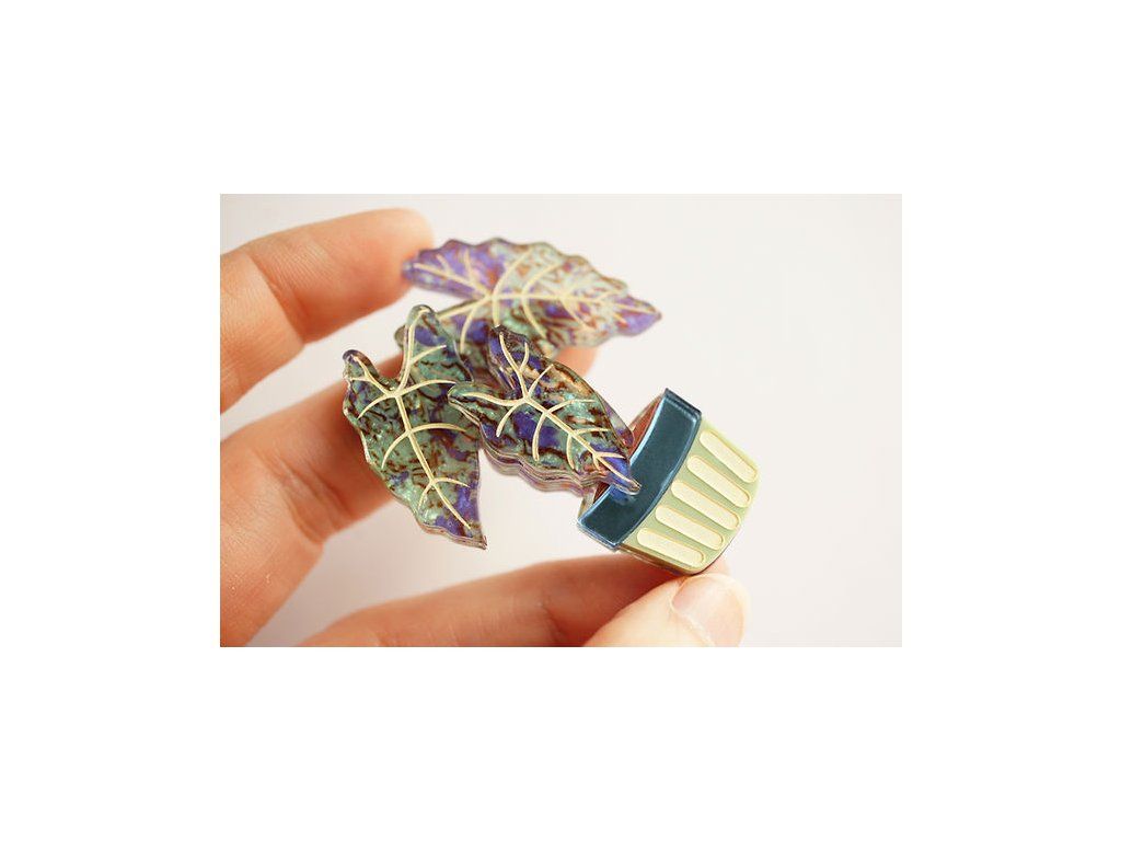 Brož Alocasia od Laliblue zaujme na první pohled svými detailně zpracovanými listy s výraznou strukturou a jemným leskem. Tato ikonická rostlina dodá vašemu outfitu svěží, lehce exotický nádech.