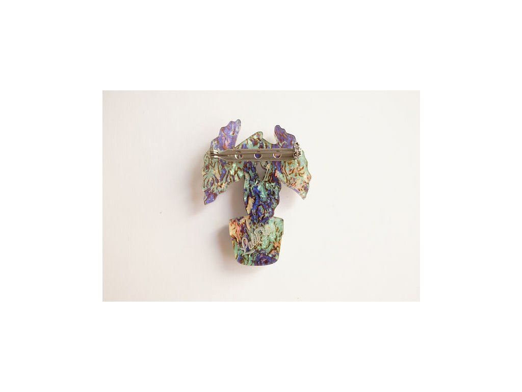 Díky kombinaci různých textur a vrstvení akrylu působí brož živě a plasticky. Je lehká, pohodlná na nošení a perfektně doplní jak minimalistický outfit, tak i výraznější retro styl.