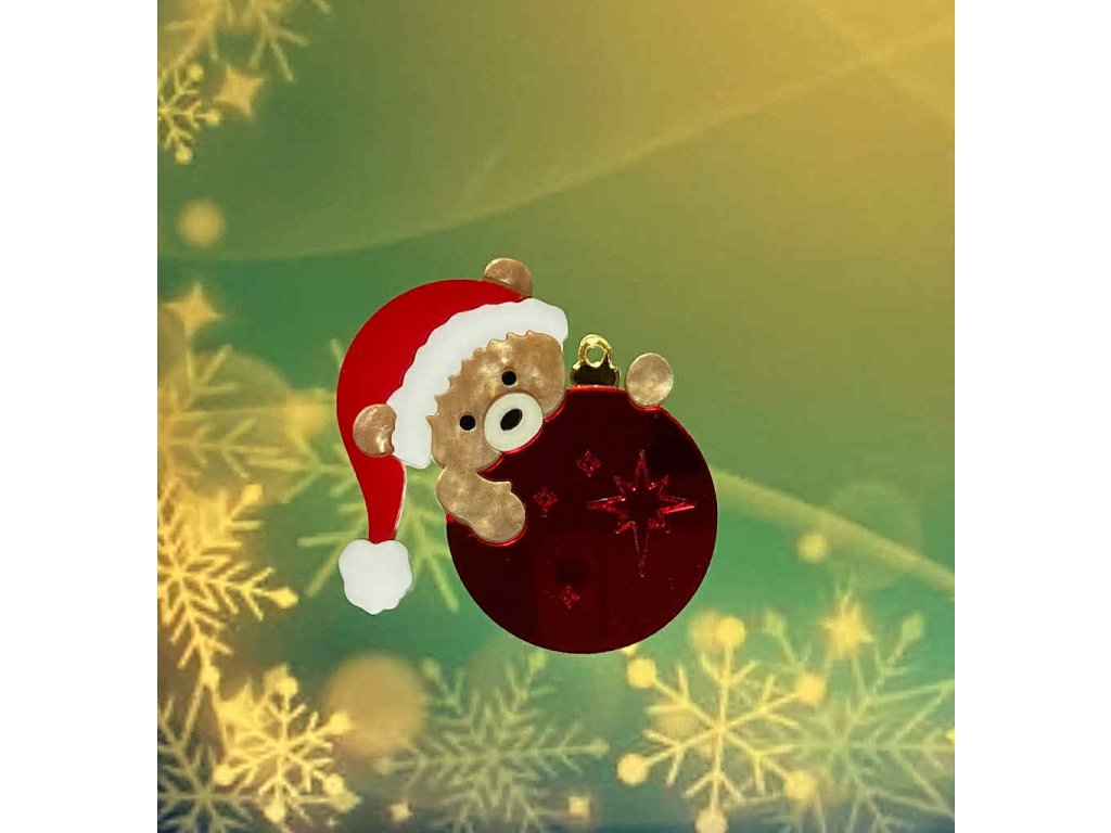 Brož Bear-y Christmas zachycuje jednoduchý, milý vánoční motiv – medvídka v červené čepici, který se schovává za vánoční ozdobu. Působí jemně, hravě, ale zároveň nenápadně, takže se dobře nosí i mimo čistě sváteční outfit.