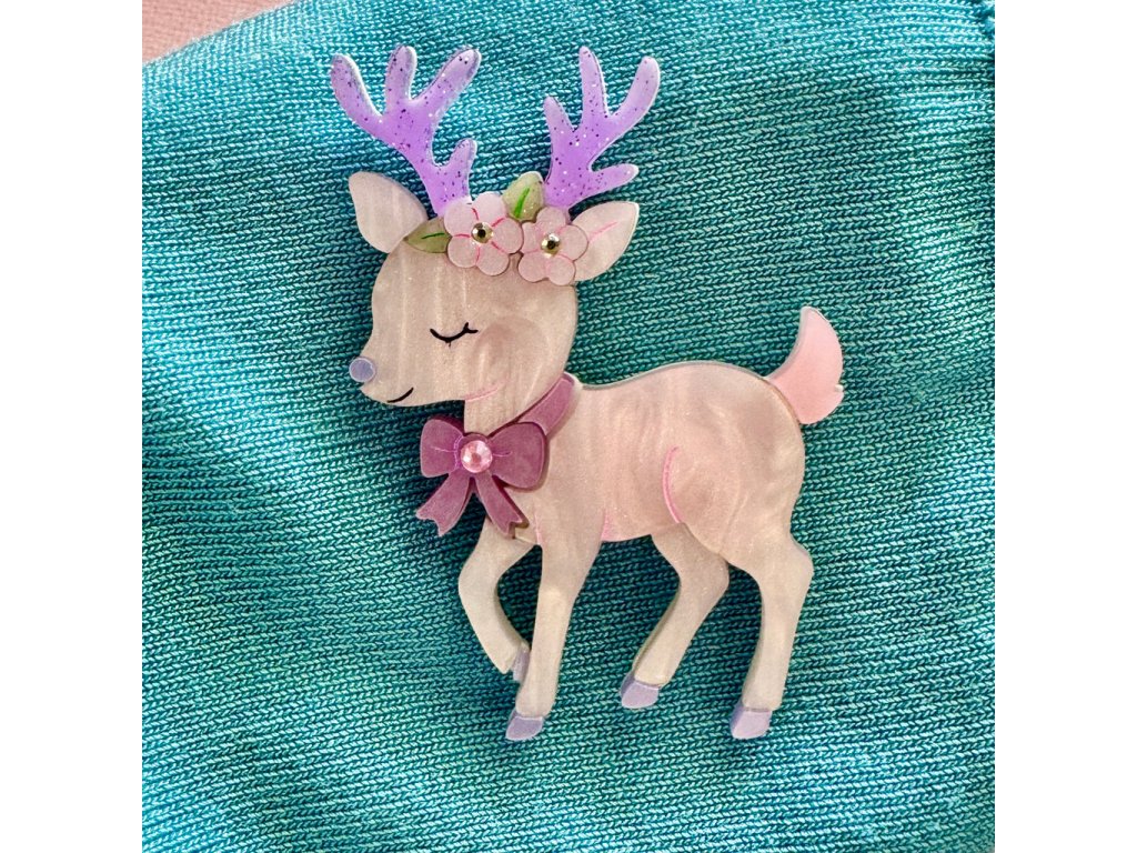 Brož Candy the Deer od značky Wintersheart je něžný a pohádkový kousek inspirovaný lesními motivy. Srnka s levandulovými parůžky, květinovým věnečkem a mašličkou působí klidně, mile a velmi harmonicky – jako drobný detail z kouzelného lesa.