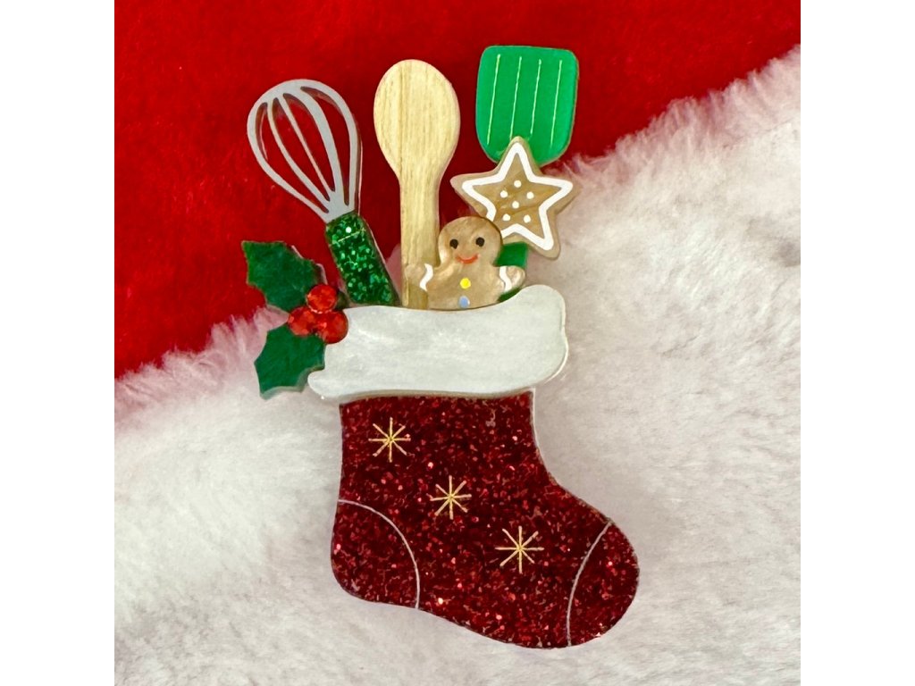 Vánoce voní po cukroví – a tahle brož od Wintersheart je toho důkazem! Cooking Stocking je hravá a okouzlující brož ve tvaru třpytivé vánoční punčochy plné kuchyňských pomocníků, perníčků a vánočního koření. Dokonalý kousek pro všechny milovnice pečení, sváteční atmosféry a originálních doplňků.