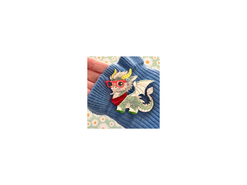 Brož Dexter the Dragon od Wintersheart je důkazem, že i draci mohou být styloví – s červenými brýlemi, šálou a hřejivým úsměvem si okamžitě získá vaše srdce.