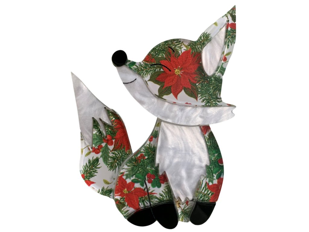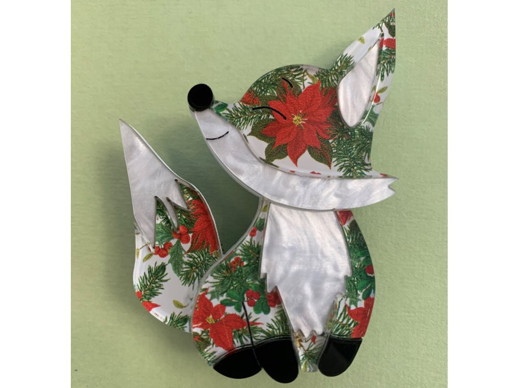 Její kožíšek zdobí akryl s jemným perleťovým leskem a originálním vzorem s vánočními hvězdami a větvičkami. Tato brož je jako malý kousek sváteční radosti, který rozzáří každý outfit.