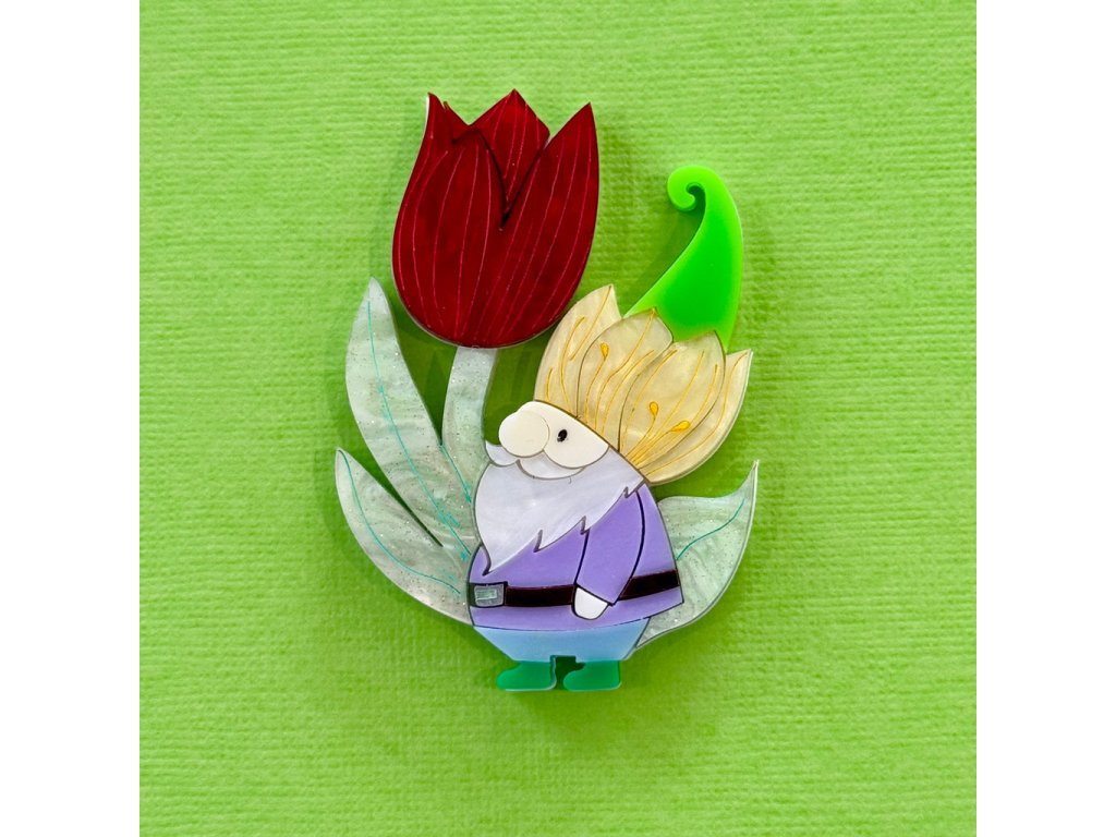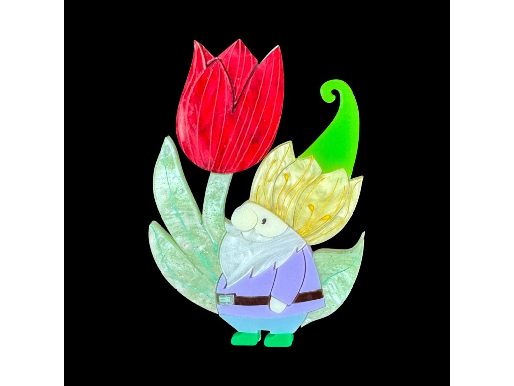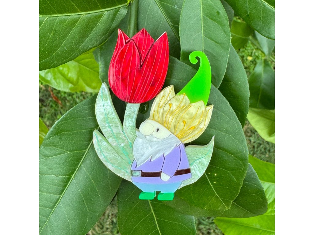 Objevte jedinečnou brož od australské značky Wintersheart. Roztomilý skřítek s výrazným červeným tulipánem představuje spojení fantazie, přírody a originality. Díky ruční výrobě z kvalitního potištěného akrylu je každý kus originální a může se mírně lišit ve vzoru – právě to mu dodává na autentičnosti.