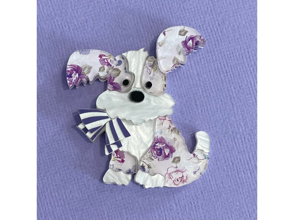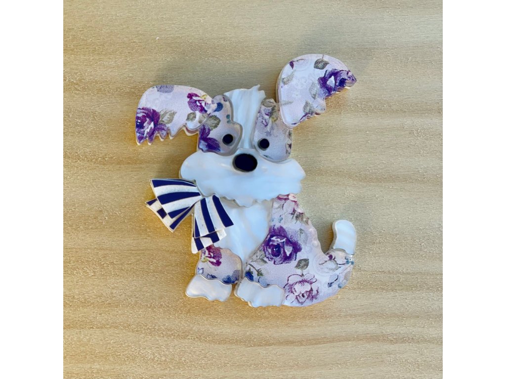 Brož Oscar the Patterned Dog od značky Wintersheart je roztomilý a stylový doplněk, který si zamilují všichni milovníci psů a originálních detailů. Pejsek s velkýma ušima, šátkem kolem krku a jemným květinovým vzorem působí hravě, ale zároveň elegantně.