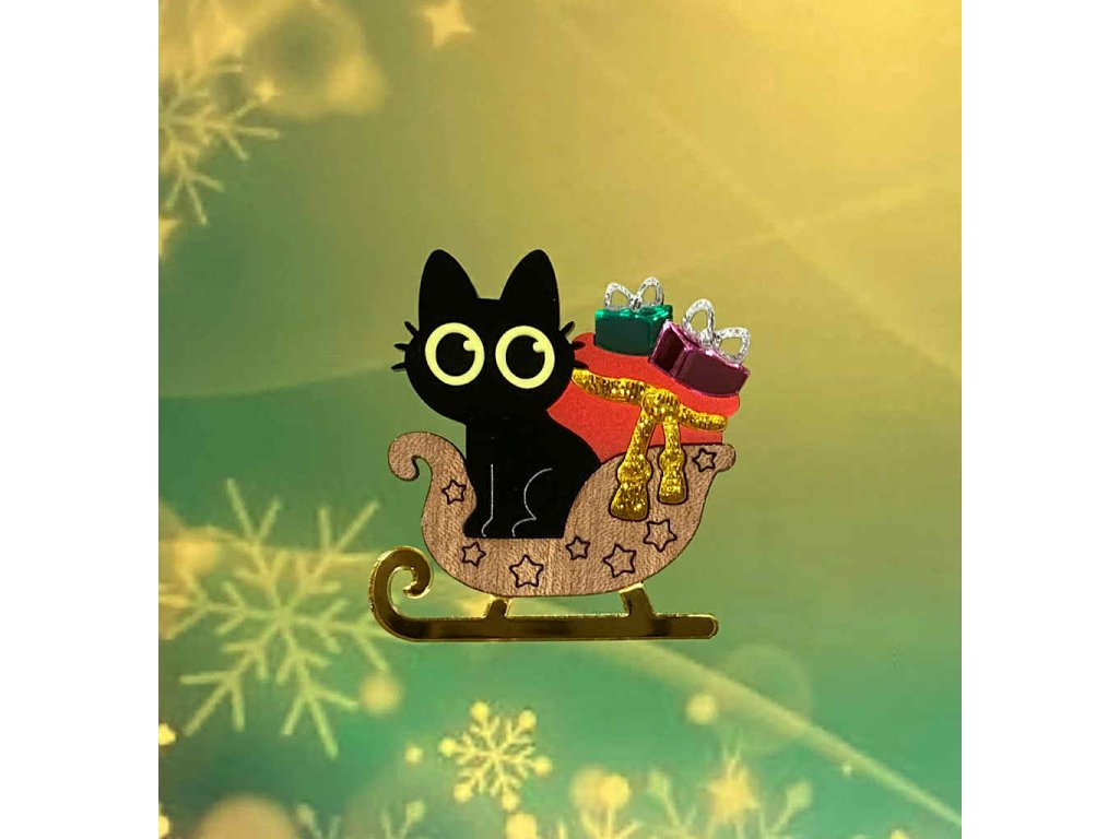 Brož Peeper’s Sleigh Ride zachycuje malou černou kočku, jak se veze na saních plných dárků. Motiv je jednoduchý, milý a má lehce pohádkovou atmosféru, aniž by působil přehnaně svátečně. Skvěle zapadne mezi ostatní vánoční brože i do zimního šatníku obecně.