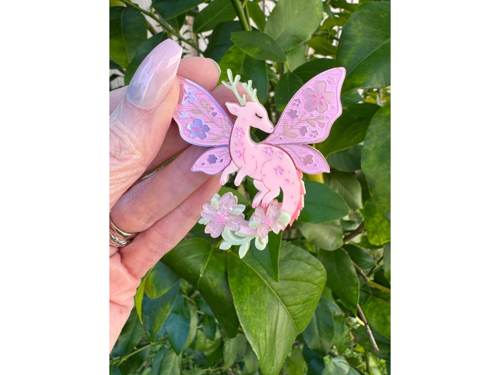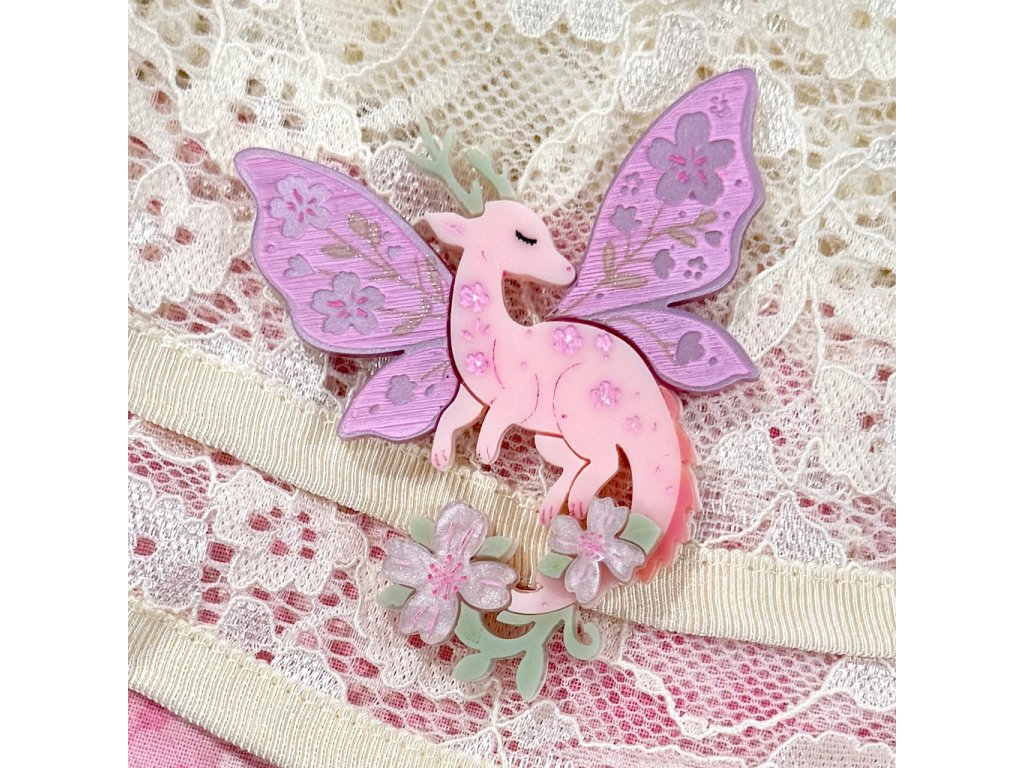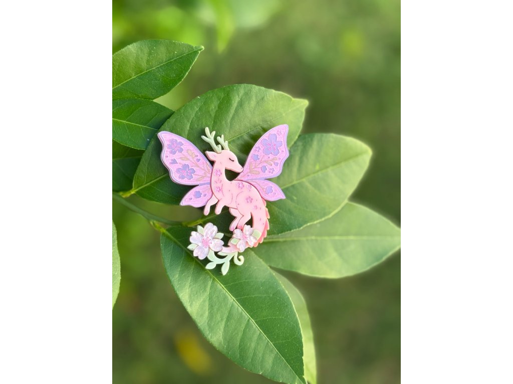 Brož Sakura Dragon od značky Wintersheart spojuje svět fantazie s jemností japonských třešňových květů. Růžový drak s něžně zdobenými křídly, květinovými detaily a klidným výrazem působí lehce, snově a velmi harmonicky.