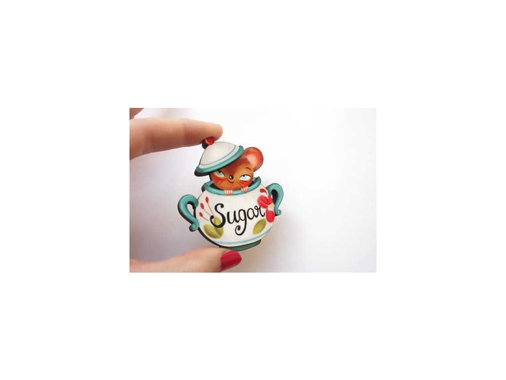Tahle brož od LaliBlue přináší do outfitu špetku humoru a pořádnou dávku retro kouzla. Myška vykukující z cukřenky s nápisem „Sugar“ působí mile, lehce nostalgicky a přesně tím stylem, který dělá LaliBlue brože tak výjimečnými.
