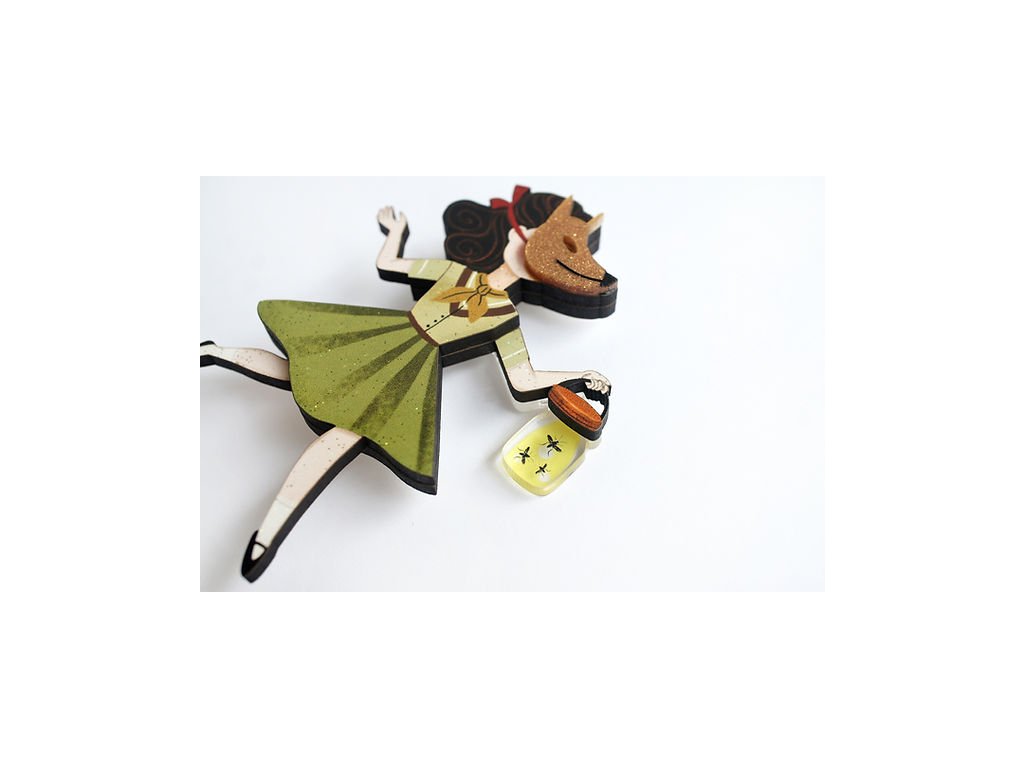 Objevte kouzlo ručně vyráběné brože LaliBlue. Tento jedinečný šperk (8,5 × 6 cm) je vytvořen z ilustrovaného dřeva pomocí sublimace a doplněn průhledným akrylovým lampionem se světluškami, které dodávají celému designu hravý i magický efekt. Brož je opatřena kvalitním nerezovým zapínáním pro bezpečné nošení.