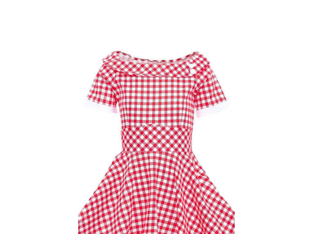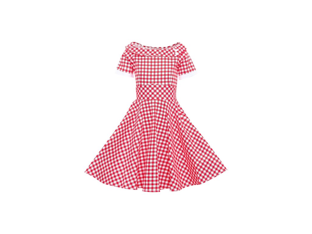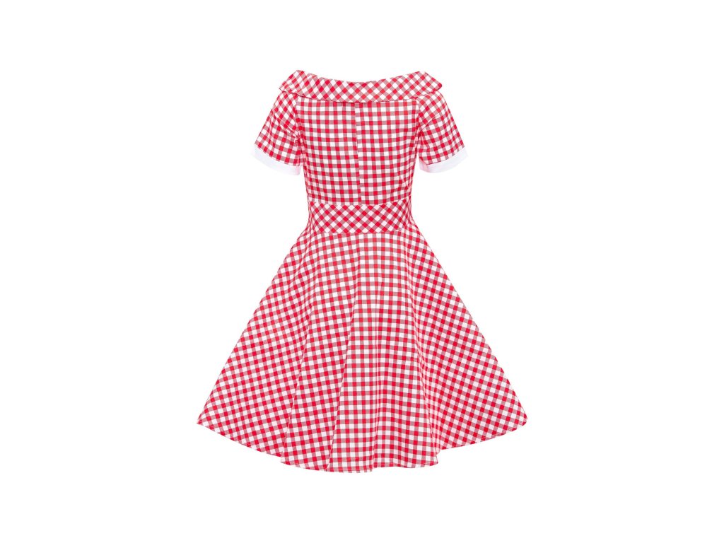 Roztomilé šatičky v červenobílé kostce jsou jako stvořené pro malé slečny, které chtějí roztančit každé odpoledne! V pase krásně padnou, sukně se točí do plného kruhu a lehoučká bavlna zajistí pohodlí i při těch největších letních dobrodružstvích. Stylový detail s knoflíčkem u výstřihu a jemně spadlá ramena dodávají modelu šmrnc starých dobrých časů. Ať už na piknik, narozeniny nebo první retro párty – v těchto šatech zazáří každá malá pin-up princezna!