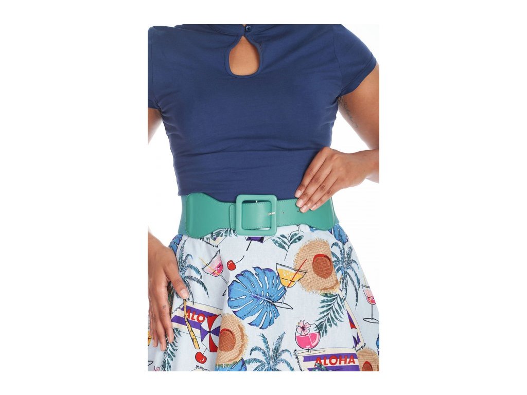 Oživ svůj outfit svěží vlnou tyrkysové! Tento široký retro pásek v tyrkysovém odstínu je perfektním doplňkem, pokud chceš dodat barvu, tvar a šmrnc svému vzhledu. Stylová spona a pružný materiál zajistí, že bude nejen krásně vypadat, ale i pohodlně sedět celý den.