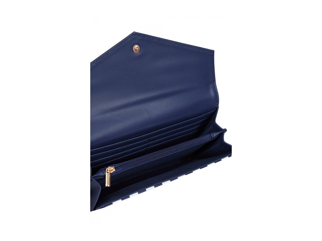 Klasické bílo-modré pruhy, elegantní silueta a jemná mašlička dělají z této peněženky kousek, který v sobě dokonale snoubí vintage šarm s praktičností. Peněženka Ravello od značky BANNED Apparel je vyrobena z kvalitní veganské kůže a nabídne dostatek prostoru na karty, bankovky i mince – to vše ve stylu, který si zamiluje každá retro nadšenkyně.