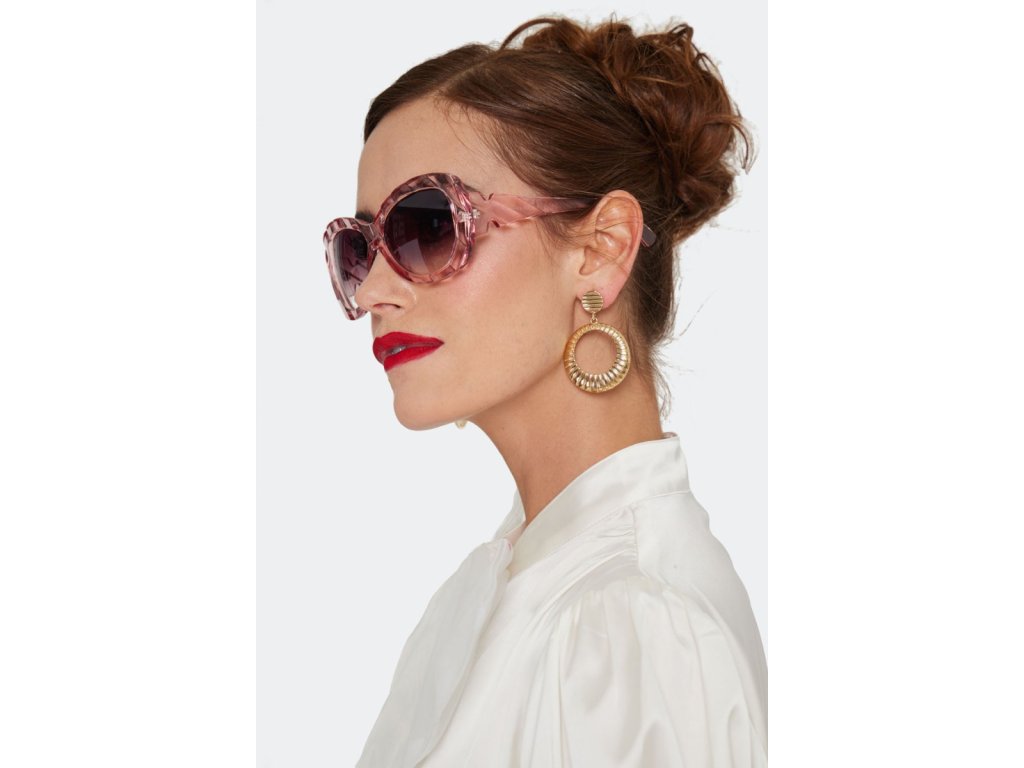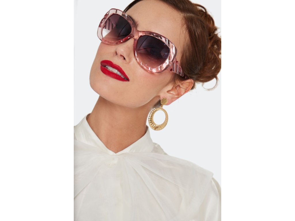 Doplňte svůj vintage outfit těmito 50s retro slunečními brýlemi v jemné růžové barvě. Brýle mají výrazný, designově tvarovaný rám, který podtrhne vaši osobnost a dodá každému looku dávku hollywoodského glamouru.