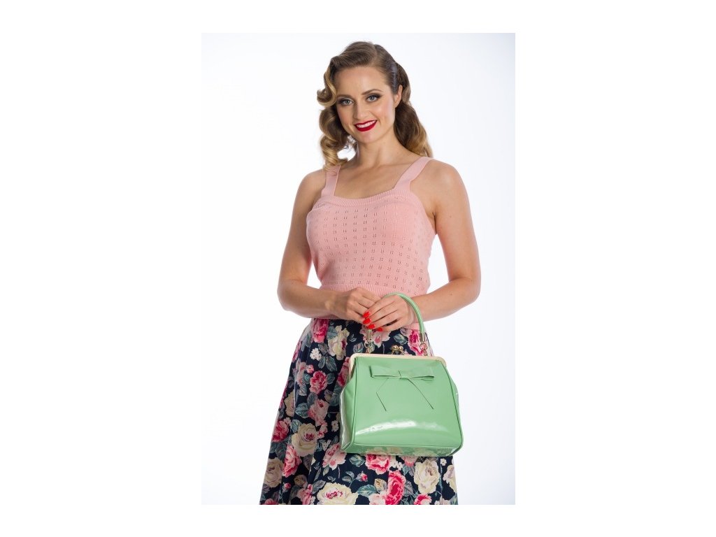 Osvěžující jako limetkový sorbet v horkém dni! Mintová kabelka s retro mašličkou je perfektním doplňkem k bílým šatům, pastelům i džínovině. Elegantní vintage rám a praktické držadlo dělají z tohoto kousku stylovou volbu na každý den.