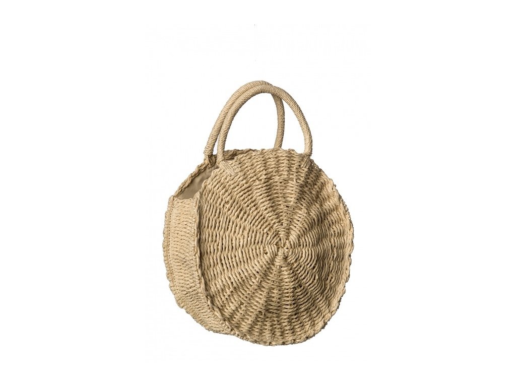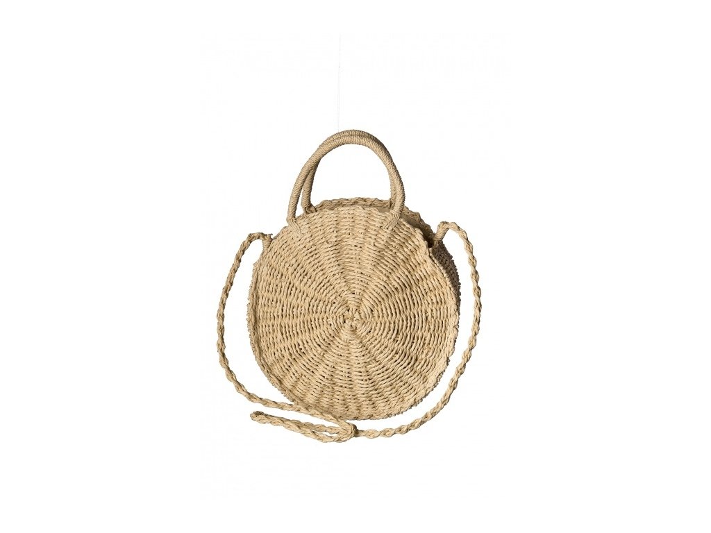 Lehká, přírodní a naprosto stylová. Tato kulatá kabelka zeí slámy je ideální společník na pikniky, výlety k moři i letní trhy. Její originální tvar, pevné ucho a nadčasový vzhled z ní dělají must-have kousek pro každou milovnici retro i boho stylu.