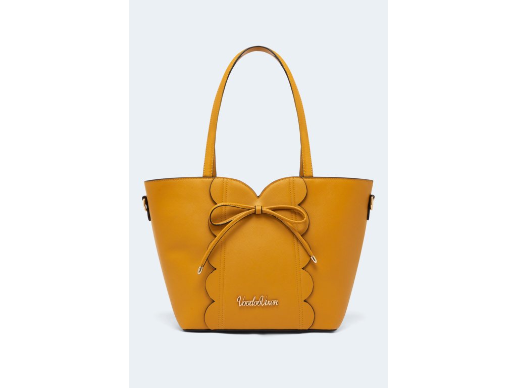 Dodejte svému outfitu nadčasovou eleganci s touto Vintage tote taškou Voodoo Vixen. Kabelka zaujme jemným retro designem s ozdobným vlnkovaným lemem a romantickou mašlí na přední straně.