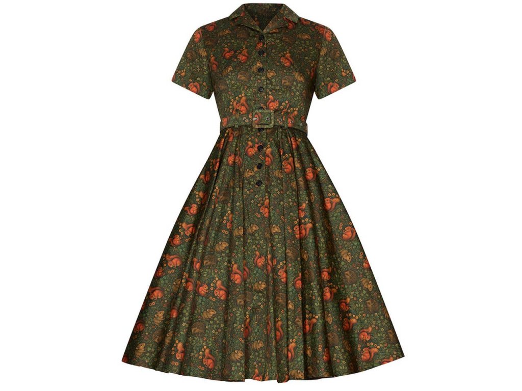 Šaty Lucy Squirrel Friends od Succubus Clothing jsou limitovanou edicí, která si získá srdce všech milovnic lesních motivů. Detailní potisk veverek, myšek a ježků mezi kvítky a listím působí jako ilustrace z pohádkové knížky.