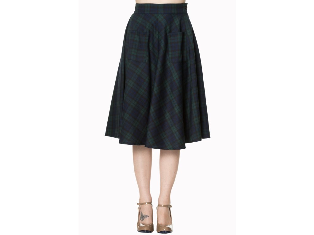 Apple of My Eye Skirt od Banned Retro je ztělesněním vintage šarmu s moderním nádechem. Tato sukně v krásném modrozeleném tartanu působí elegantně a přitom uvolněně – ideální volba pro milovnice retro stylu i pohodlí. Vyšší pas lichotí postavě, zatímco praktické kapsy na přední straně dodávají sukní neodolatelný šmrnc i každodenní využitelnost.