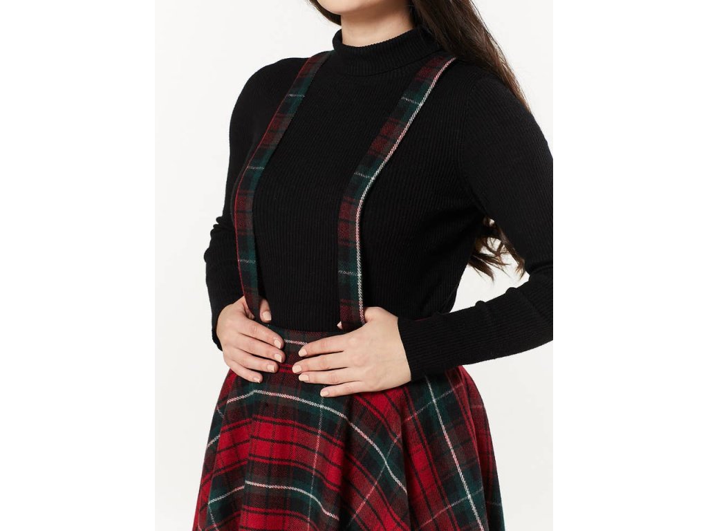 Sukně s kšandami Sophie - Red & Dark Green tartan