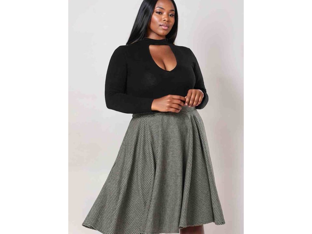 Klasický černo-bílý houndstooth vzor je symbolem sofistikovaného vintage stylu a skvěle se kombinuje s jednoduchými úplety, halenkami i kabátky. Sukně je ideální volbou pro chladnější dny, pracovní schůzky i stylové brunche.