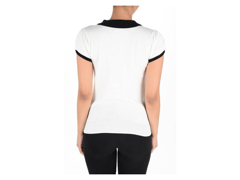 Stylový retro pulovr zkráceného střihu s límečkem a krátkými rukávy, inspirovaný 50. léty.