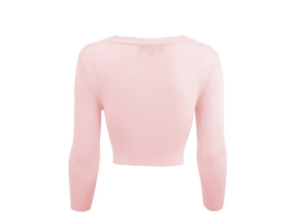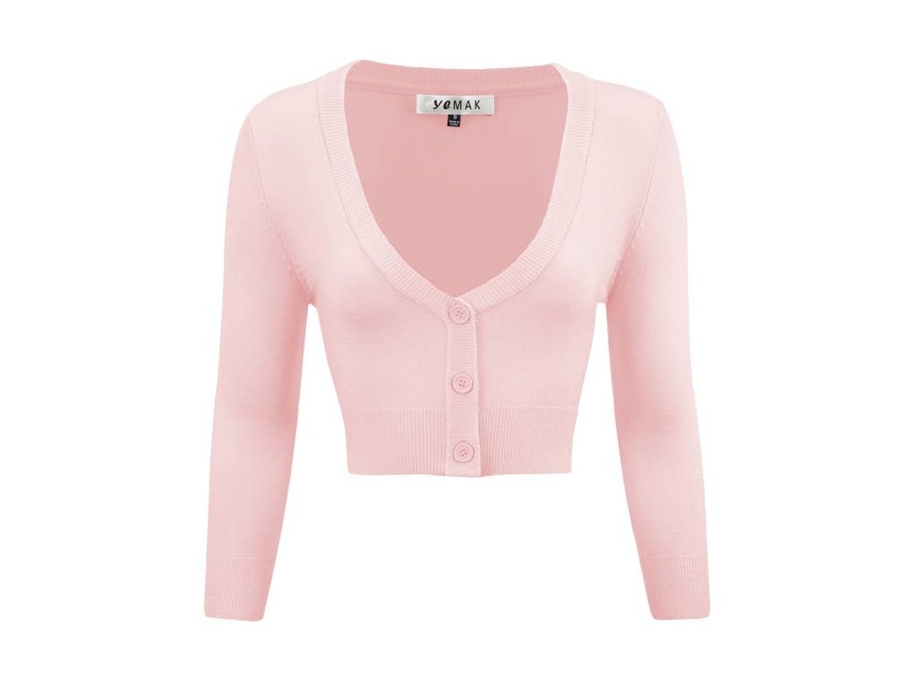 Elegantní dámský kratší cardigan se 3/4 rukávy v ikonickém retro a pin-up stylu. Perfektně doplní šaty i sukni, zahřeje v chladnějších dnech a zároveň zvýrazní ženskou siluetu. Vyroben z měkkého a pružného úpletu, který krásně sedí a pohodlně se nosí. Zapínání na knoflíčky vpředu dodává cardiganu styl 50. let.