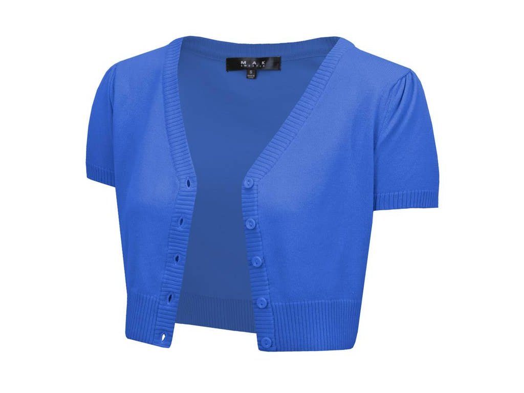 Svetřík Mak Viola s krátkým rukávem je ideální kousek pro milovnice retro stylu. Kratší střih do pasu krásně doplní kolové sukně i šaty ve stylu 50. let a zvýrazní siluetu. Výstřih do V a zapínání na knoflíky vytváří elegantní a ženský vzhled.