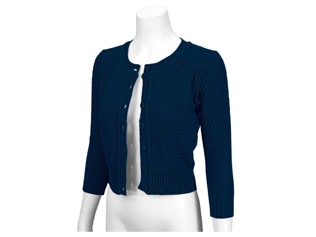 Tento krátký cardigan je inspirován ikonickou pin-up módou 50. let a přináší do vašeho šatníku nádech nostalgie. Díky unikátnímu vzoru a krátkému střihu zvýrazní pas a krásně doplní šaty i sukně s vysokým pasem.