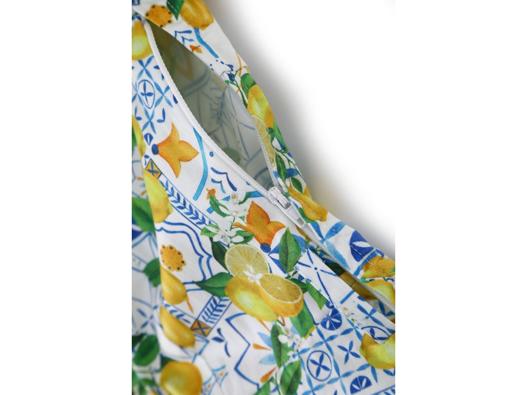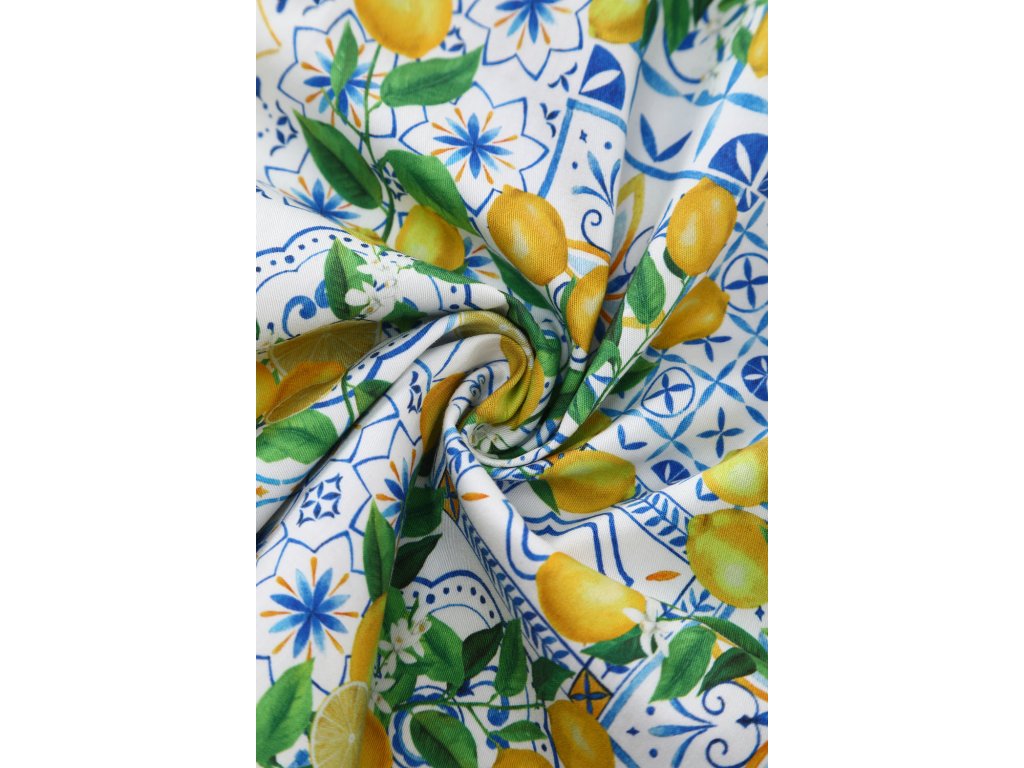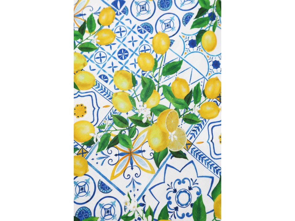 🌿 Žluté citrony září na jemném podkladu s motivem modrobílých středomořských dlaždic, které připomínají dovolenou na slunné Itálii.