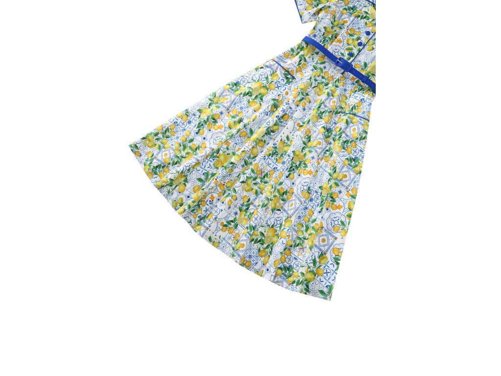 👗 Klasický střih s límečkem, modrým lemováním a polokrytým zapínáním na knoflíky dodává šatům elegantní kontrast, zatímco pásek v pase krásně tvaruje siluetu.