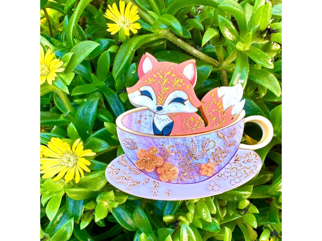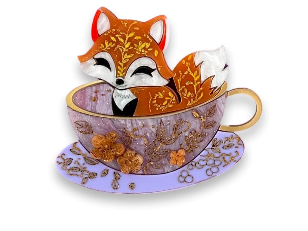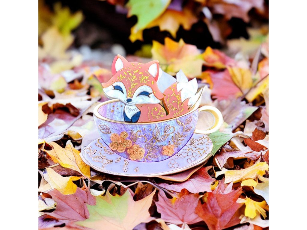 Roztomilá lištička ve šálku čaje? Ano, prosím! Tato podzimní brož v sobě spojuje něžnost, hravost a kouzlo čajového rituálu s vintage nádechem.
