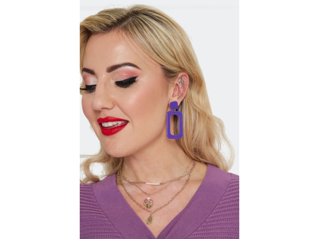 Oživte svůj retro šatník těmito stylovými náušnicemi značky Voodoo Vixen inspirovanými šedesátými lety. Náušnice mají výrazný geometrický design a krásnou fialovou barvu, která dodá vašemu looku energii a šmrnc.