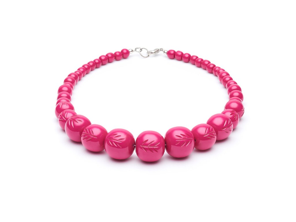 Náhrdelník Iris Pink Heavy Carve je nepřehlédnutelný kousek, který rozzáří každý retro šatník. Sytá růžová barva v kombinaci s plasticky vyřezávanými korálky působí hravě, žensky a sebevědomě – přesně tak, jak to milujeme.