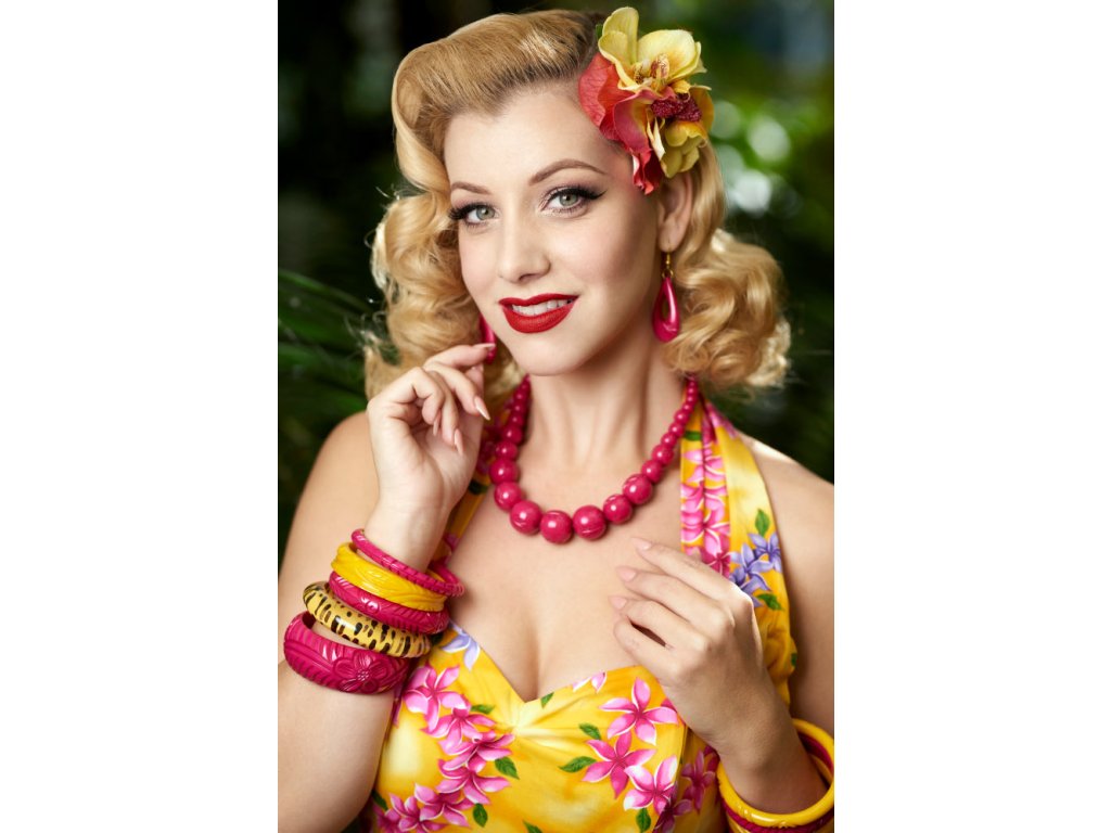 Skvěle vynikne k letním šatům, pin-up outfitům i jako kontrast k zeleným nebo neutrálním tónům. Ať už se chystáš na procházku městem, zahradní párty nebo jen chceš dodat outfitu šmrnc, tenhle náhrdelník udělá práci za tebe.
