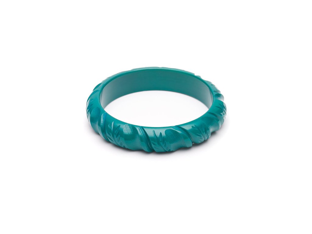 Svěží elegance v plnější podobě. Náramek Midi Jade Green Heavy Carve od značky Splendette zaujme sytou zelenou barvou a výrazným plastickým zdobením, které připomíná tropické listy a klidnou vodní hladinu. Díky střední šířce působí výrazněji než úzká varianta, ale stále si zachovává lehkost a ženskost.