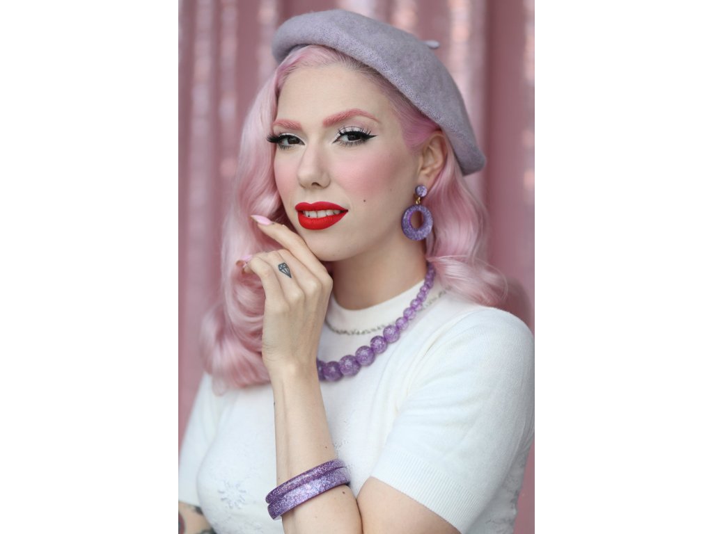 „Ne všechno, co se třpytí, je zlato“ – a přesně v tom je kouzlo náramku Lilac Glitter Midi. Jemný pastelový odstín lila v kombinaci s decentním třpytem připomíná taneční večery a plesy padesátých let. Náramek krásně doplní vintage outfit, ale stejně dobře funguje i jako jemný akcent k modernímu stylu.