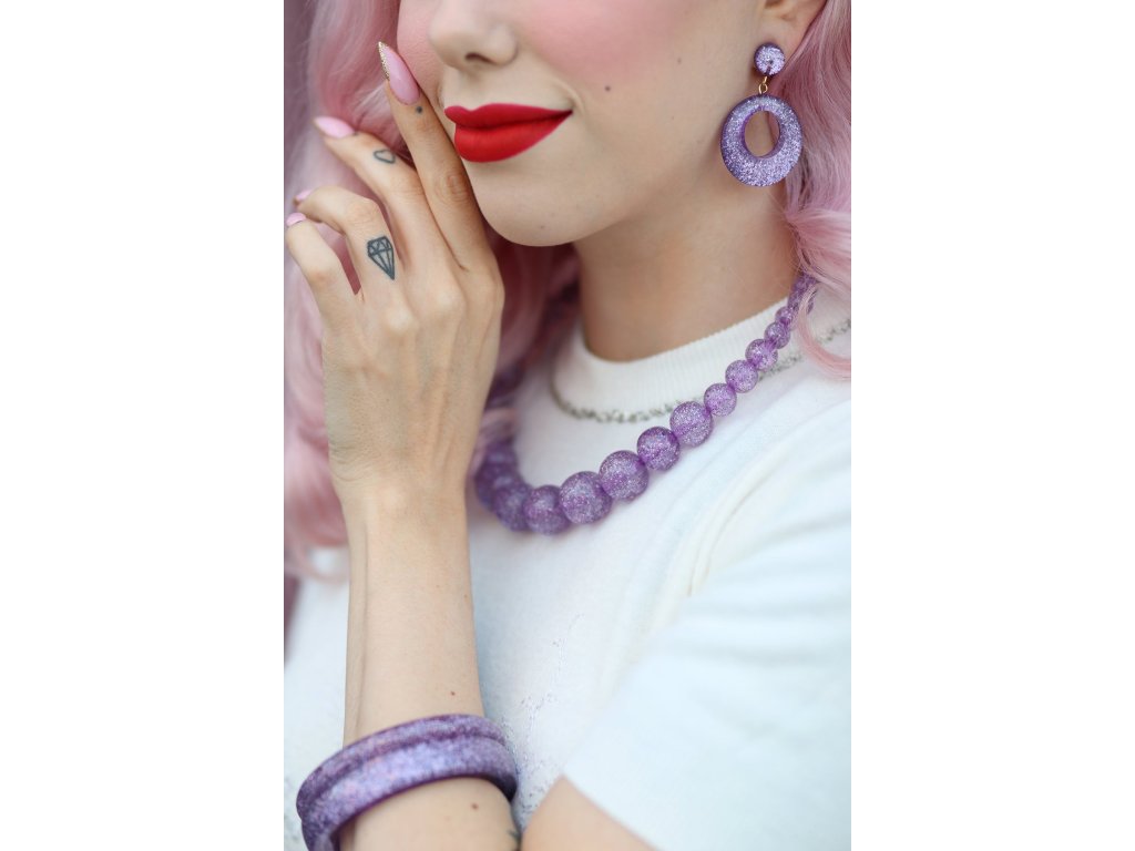 Pro dokonale sladěný vzhled je můžete kombinovat s fialovým třpytivým náramkem nebo korálovým náhrdelníkem ve stejném odstínu.