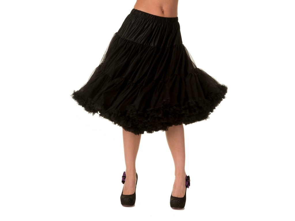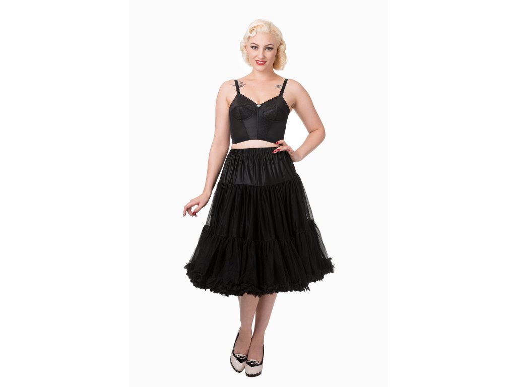 Spodnička Lifeforms Black od Banned Retro je ikonou mezi spodničkami – univerzální, stylová a vždy připravená dodat tvému outfitu ten pravý retro nádech. Černý tylový materiál vytváří nádherně plný tvar sukní, který se při pohybu krásně vlní a dodává siluetě dokonalou ženskost.