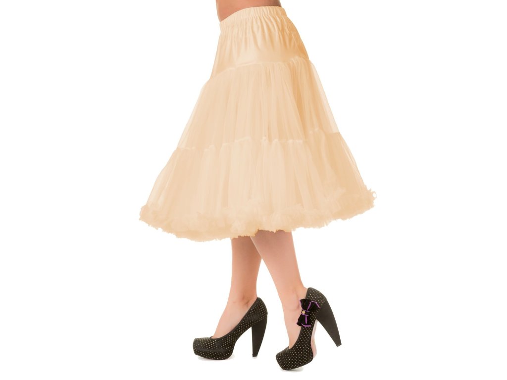 Spodnička Lifeforms Champagne od Banned Retro je jemným základem každého dokonalého vintage outfitu. Díky dvouvrstvé konstrukci z lehkého tylu vytváří krásně plný tvar sukní a dodává jim ten pravý 50s “swing” efekt.